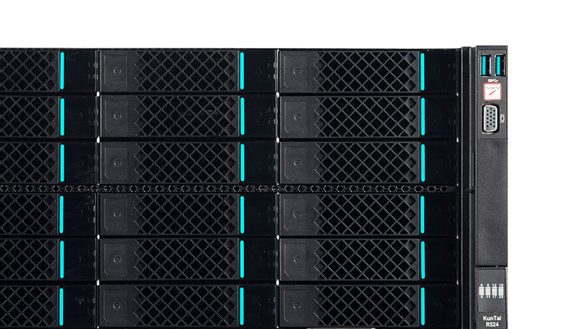KunTai R524 存储型服务器是快盈VIII数码基于鲲鹏处理器推出的新一代 ARM数据中心服务器。。。主要面向存储业务,,,,具有海量存储、、、高性能、、、低功耗以及易扩展的特点,,,,适合为大数据分析、、、、软件定义存 储等应用场景的工作负载进行髙效加速。。