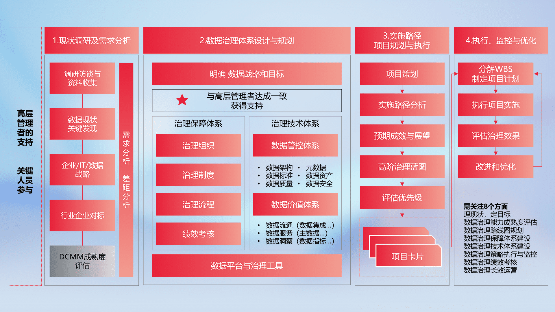 制定并执行统一的数据标准,,,规范数据定义和格式,,,消除冗余和不一致性,,,实现跨部门和跨系统的数据一致性,,,为企业提供标准化的数据基础。。。。